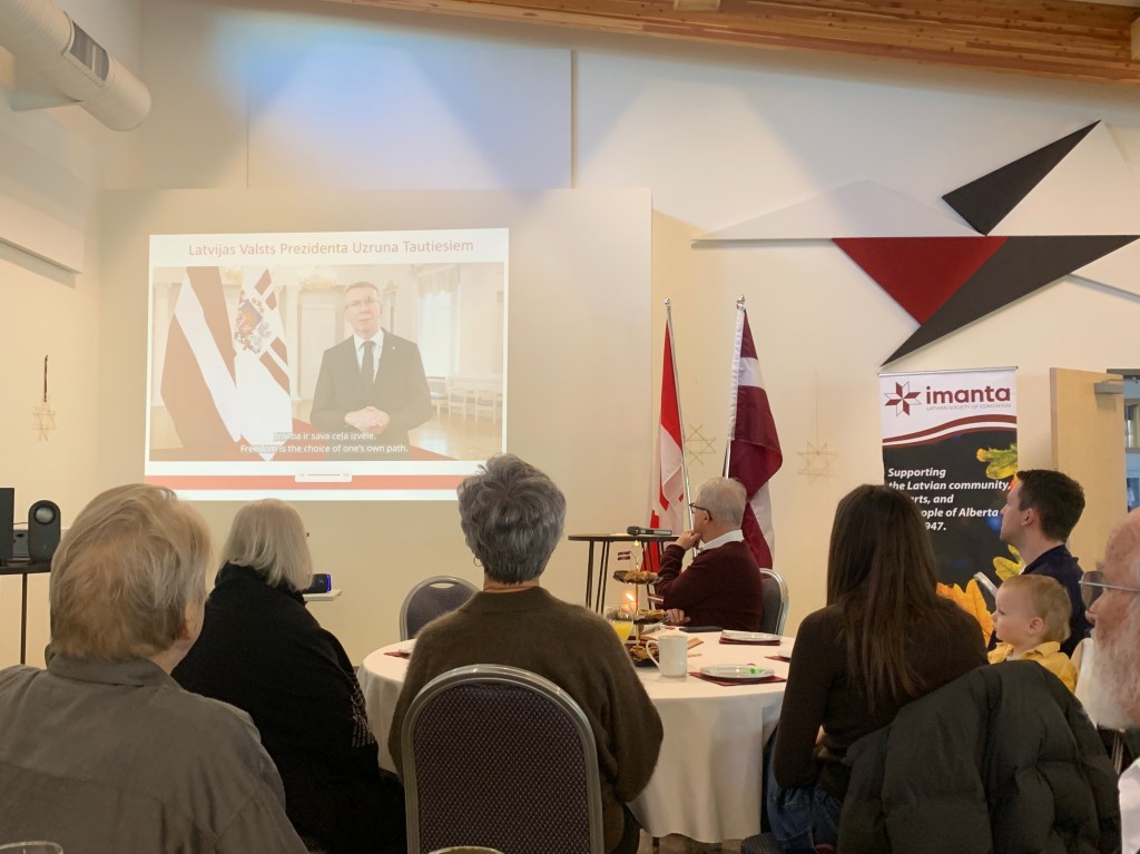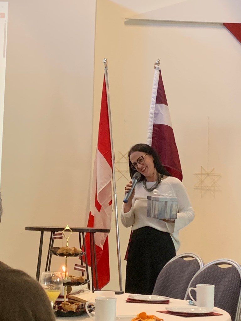 We also listened to the Latvian President’s video greeting and Latvian National Anthem, celebrated Zane Gara for her hard work with the Children’s Latvian School, and later watched a video of the school’s weekly activities, and enjoyed Edgars Rudzītis’ talk about Growing up with Latvian Heritage in Canada.