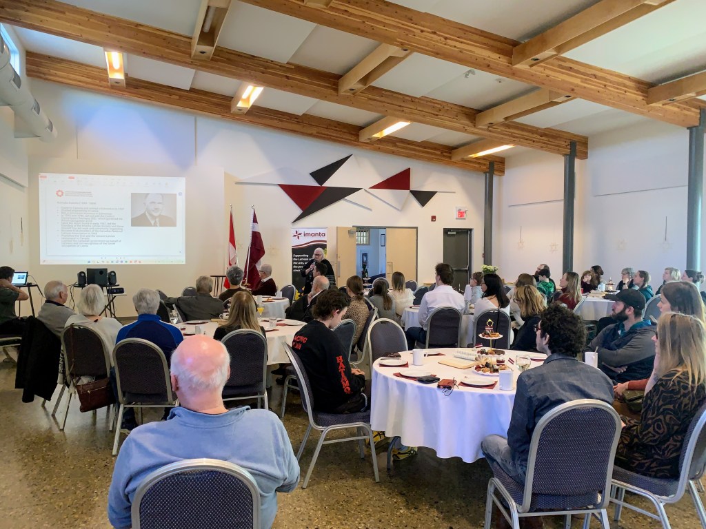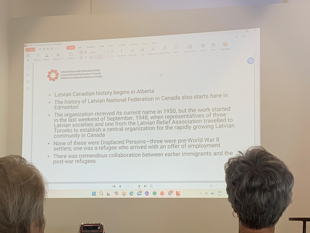 A special thank you to Dace Veinberga, who joined us from Toronto, representing the Latvian National Federation in Canada (Latviešu Nacionālā Apvienība Kanādā/LNAK). Her presentation about the Canadian Latvian Virtual Museum reminded us that one of the key figures who founded the central Latvian organization in Canada in 1948 was Konrads Dobelis from Edmonton, who founded IMANTA in 1947.