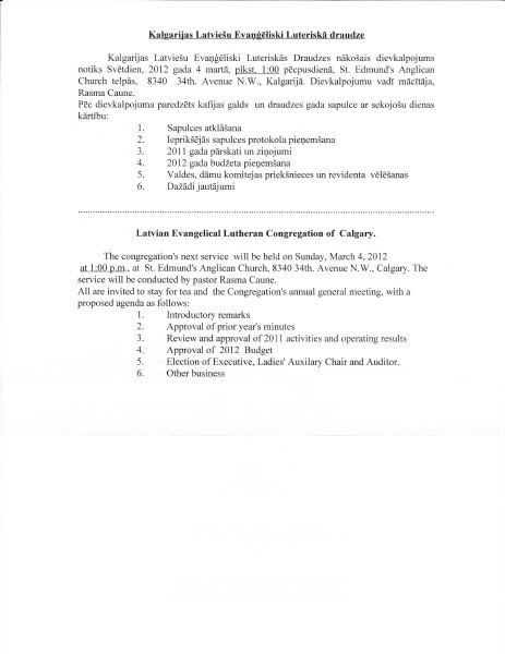 Donation requests: If you are involved with a non-profit group seeking donations, please submit a request form by November 1st. This form is available by contacting Liesma at imantaedmonton@gmail.com.